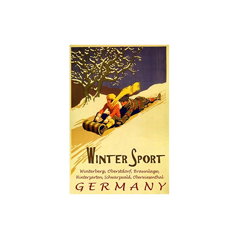 Germany SKI Mountains Winter Sport Family Fun Sledding Down Snow Hills Toboggan Bobsled 12" X 16" Vintage Poster ON Canvas REPRO WE Have Other Sizes