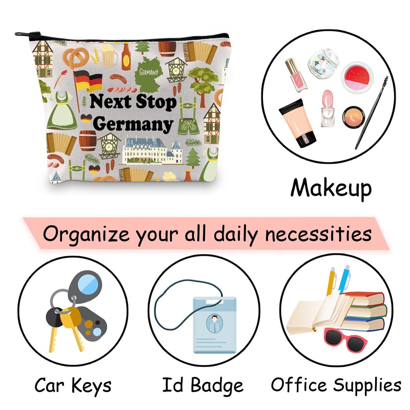 Germany Trip Gift Next Stop Germany Cosmetic Zipper Bag Germany Travel Pouch Germany Vacation Makeup Bag Tourist Gift