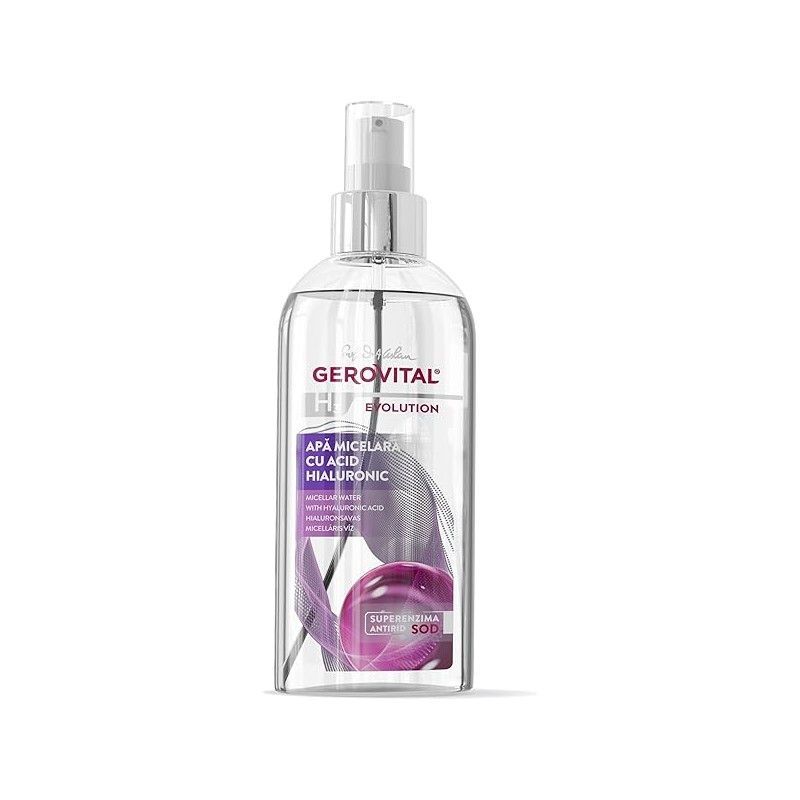 GEROVITAL EVOLUTION Micellar Water with Hyaluronic Acid, Facial Cleanser, Hydrating Makeup Remover, with Anti-Aging Super-Enzyme Superoxide Dismutase SOD, 150 ml
