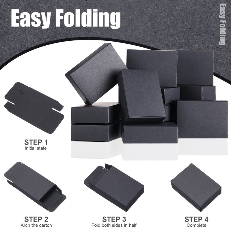 Gersoniel 100 Pcs Kraft Soap Boxes Packaging for Homemade Soap No Window Soap Boxes Empty Soap Boxes Soap Making Supplies for Party Favor Treats Wrapping Packaging, 3.8 x 2.8 x 1.2 Inch (Black)