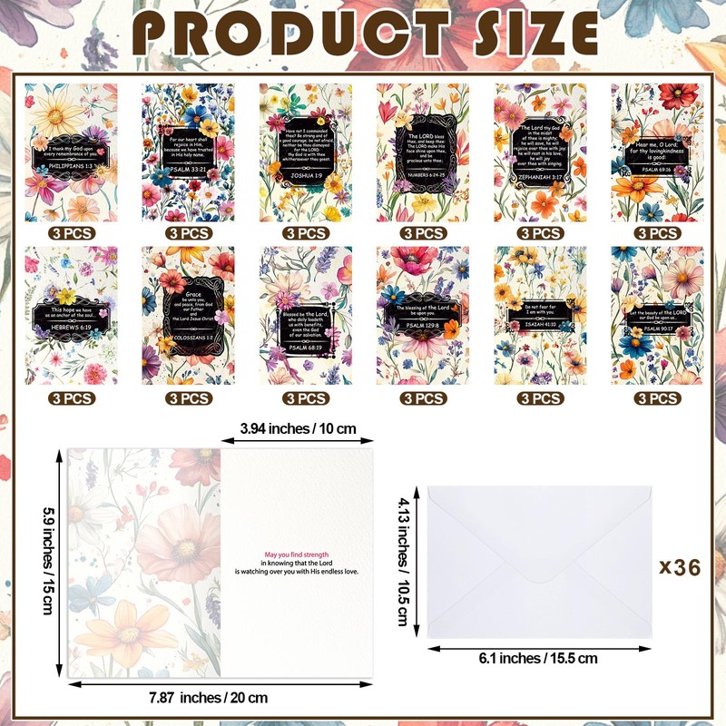 - Package Includes: our package includes 36 vibrant, scripture-bearing Christian thinking of you cards, along with 36 white envelopes; These thank you cards with envelopes provide an easy and efficient way for you to focus on expressing heartfelt messages