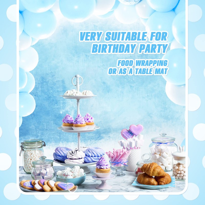 Gersoniel Wax Paper Sheets for Food Dot Printed Bakery Tissue Greaseproof Disposable Wrapping Paper for Sandwich Fast Food Picnic Basket Liner Christmas Birthday Party Supplies(Blue,150 Pcs)
