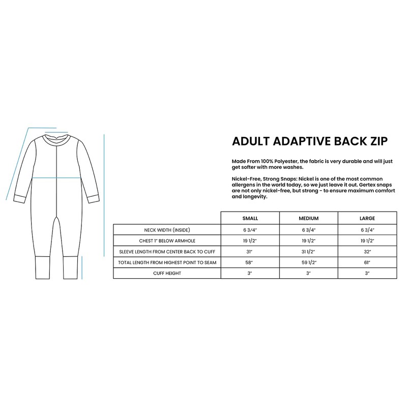 Gertex Adult Adaptive Back Zip Sleepwear | Clothing Designed for Special Needs and Disabilities (Blue, Large)