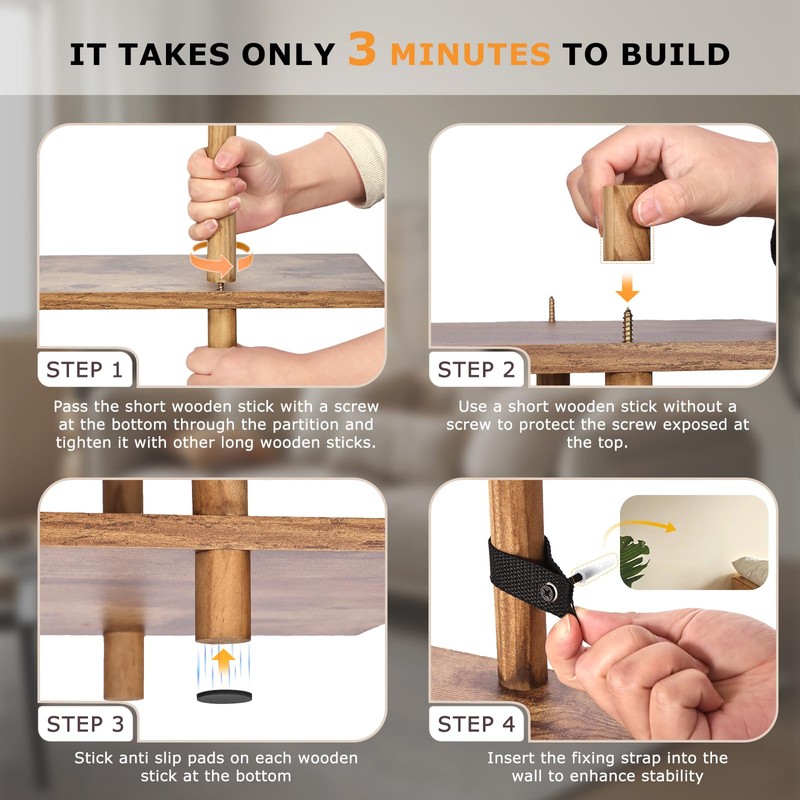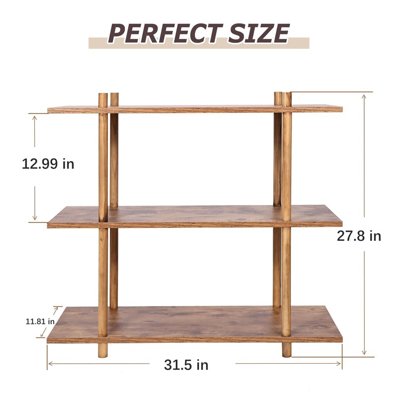 GERYMU 3 Tier Bookshelf, Narrow Wide Wood Bookshelf Storage Organizer, Industrial Open Book Shelf for Bedroom, Living Room and Home Office, Rustic Brown