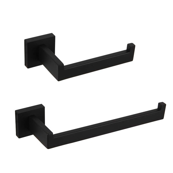 GERZWY Bathroom Hardware Accessories Sets Matte Black SUS304 Stainless Steel Bath Shower Set 2-Pieces(Toilet Paper Holder Towel Ring) Contemporary Style FG1656-2BK