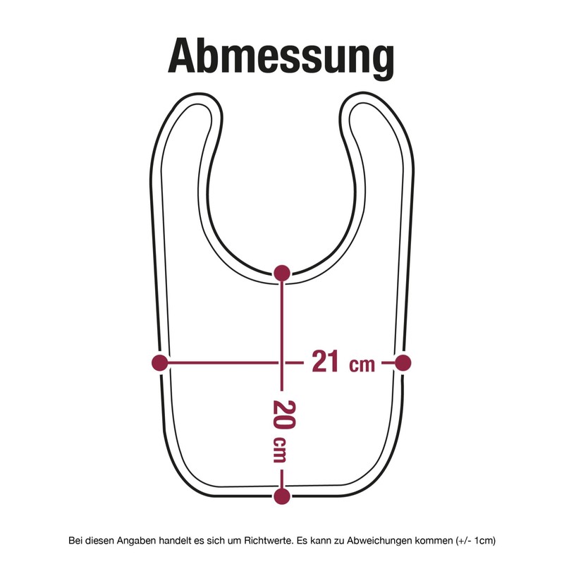 The bib is made from 100% combed, ring-spun cotton (mottled grey: 85% cotton/15% polyester), has a soft Velcro fastener and is comfortable for young people to wear. Both the double stitching processing, as well as the soft and stretchy fabric promise a long service life. Should the little one spill something, the double-layered fabric provides extra absorbency.