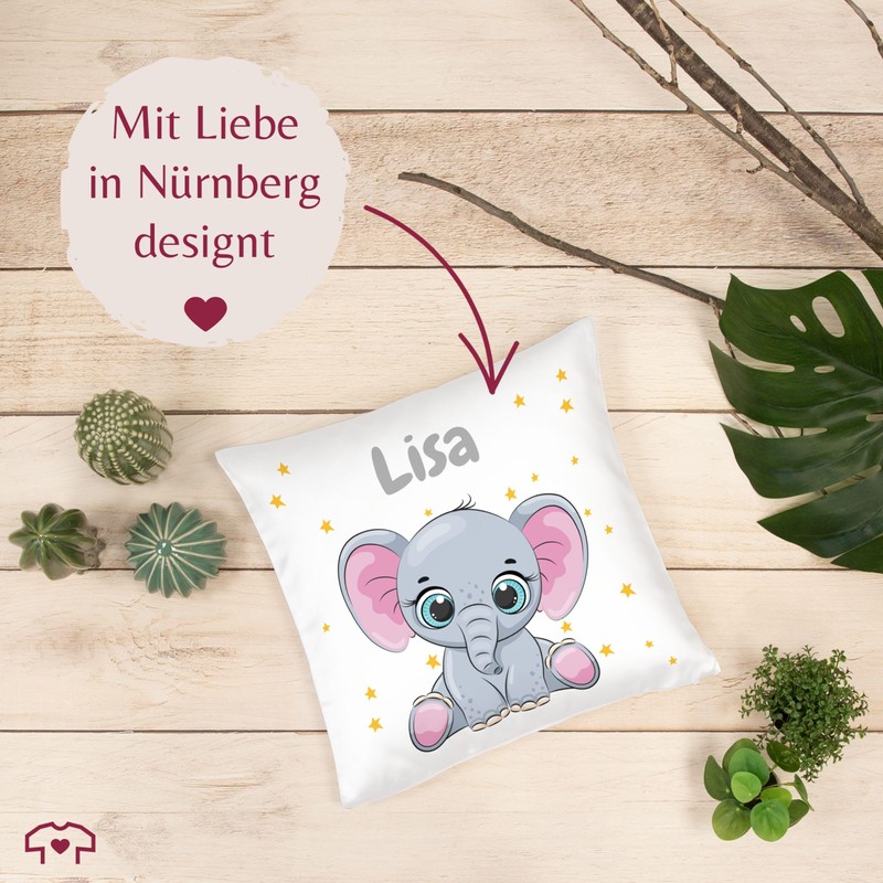 Geschenk mit Namen personalisiert by Shirtracer Cushion 40 x 40 cm Decorative Cushion - Cute Elephant Elephant Cow Elephant Motif - 40 x 40 cm - White - Elephant Gifts and Name
