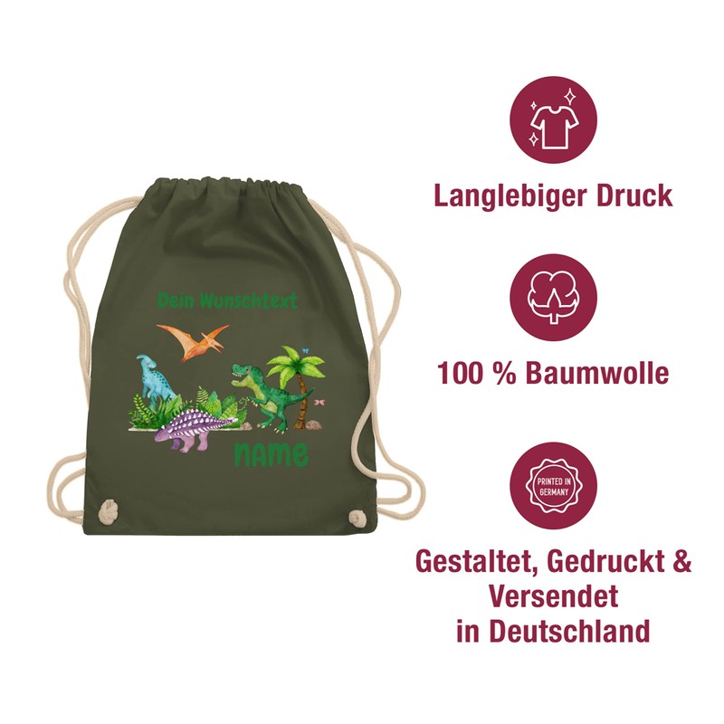 Geschenk mit Namen personalisiert by Shirtracer - Gym Bag Backpack - Animals - Dino Dinos Dinosaur, 13 Olive Green, Unit size