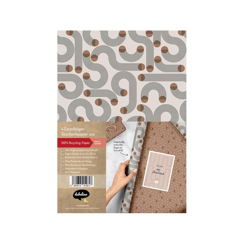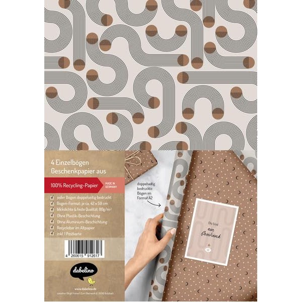 - LIEFERUMFANG: 4x beidseitig bedruckte Geschenkpapier-Bögen + 1 Postkarte
