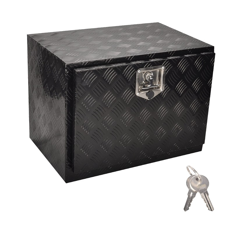 This aluminum truck tool box is perfect for mounting in trucks, RV, ATV, pickup, trailer, flatbed to load and unload tools, boards, safety chains, jacks, wrenches, crowbars, even vacation camping supplies. Constructed of heavy duty aluminum tread plate in a glossy sliver finish, this toolbox is weather resistant and will maintain useful for long term. Fully welded seams can effectively protect internal cleanliness and prevent other external factors such as rain from entering. Comes with lock and2 keys, this toolbox with deep chain is convenient to add or remove items. Ideal for tools storage in your vehicle or in your garage/home.
