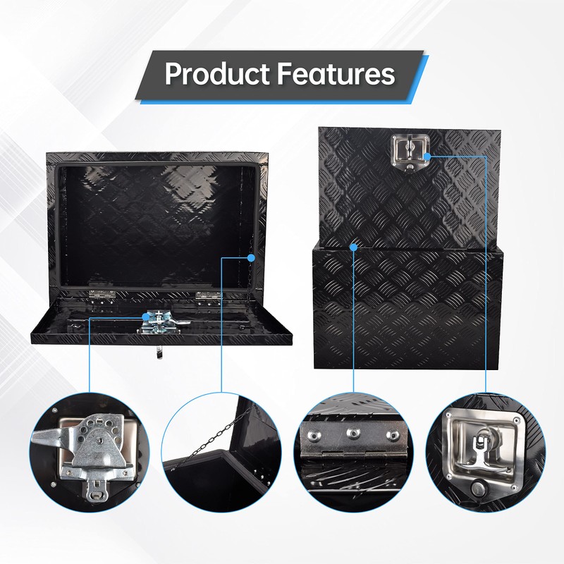 - 【Quality Materials】: This Aluminum Tool Box is characterized by high-intensive & corrosion-resistant; Weather-resistant over - lapping lid design, preventing any undesired leakage; Durable: High quality and durable appearance make the Trailer Tool Box rarely needed to repair