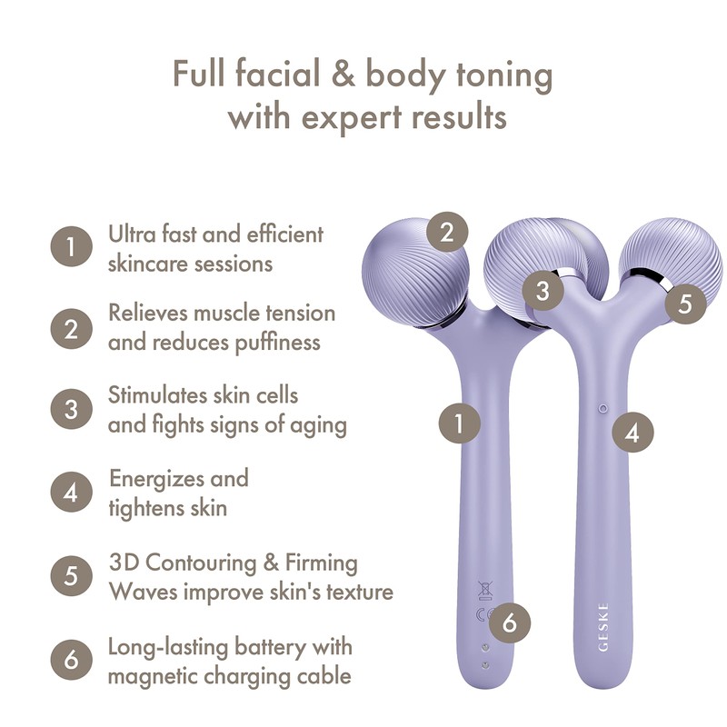 GESKE SmartAppGuided™ Sonic Facial & Body Roller 4 in 1 Derma Roller Device for Face and Body Dermaroll Professional Face Roller Tightens and Defines Body and Face