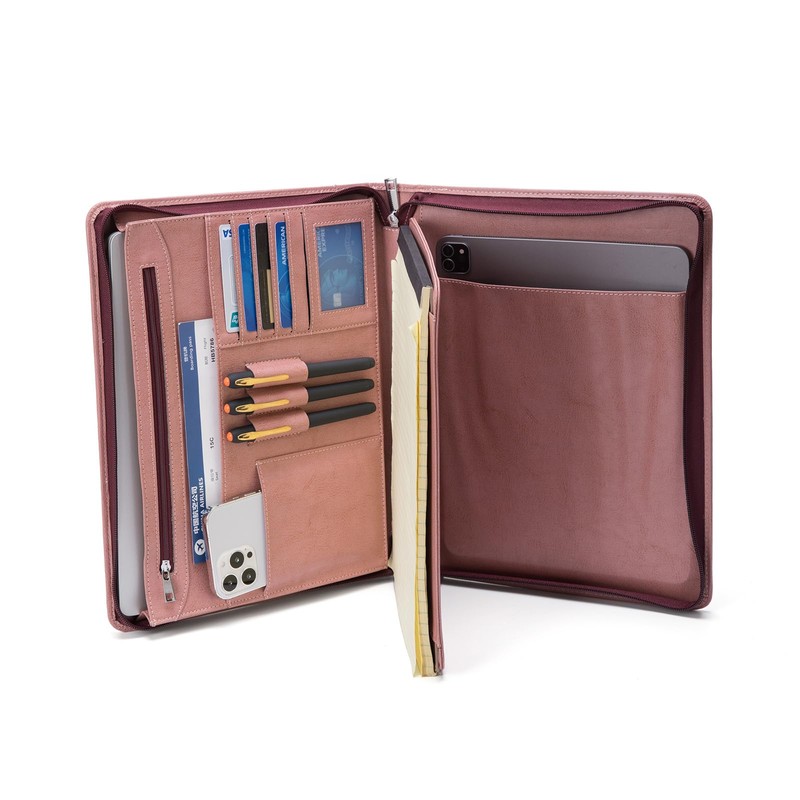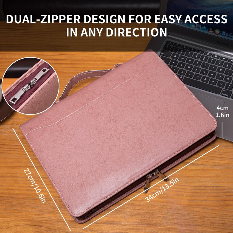 Geslun Vegan Leather Portfolio with Hidden Handle, Front Pocket, Business Padfolio Tablet/13” Laptop Organizer, Folio Document Cell Phone Holder, Professional Executive Folder, Pink