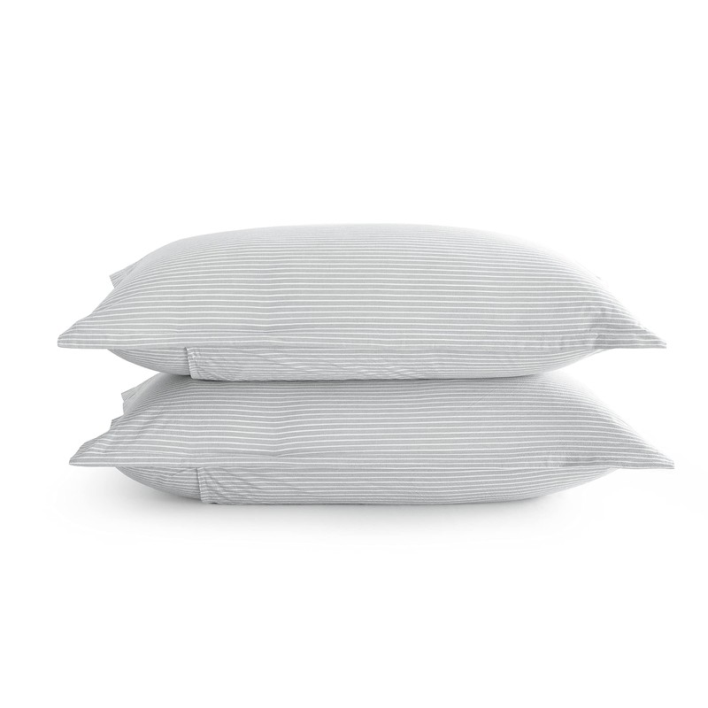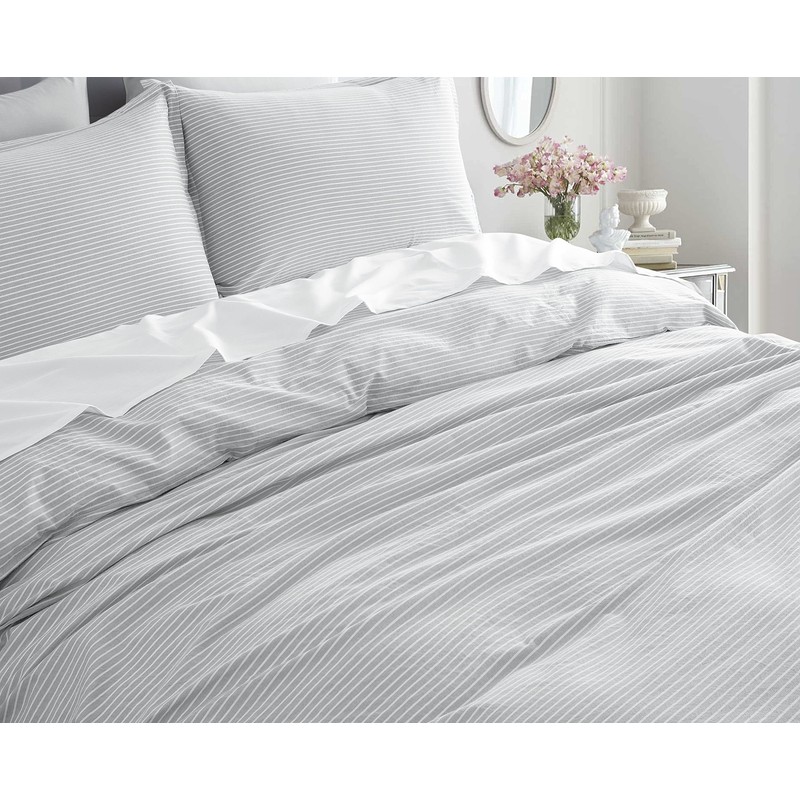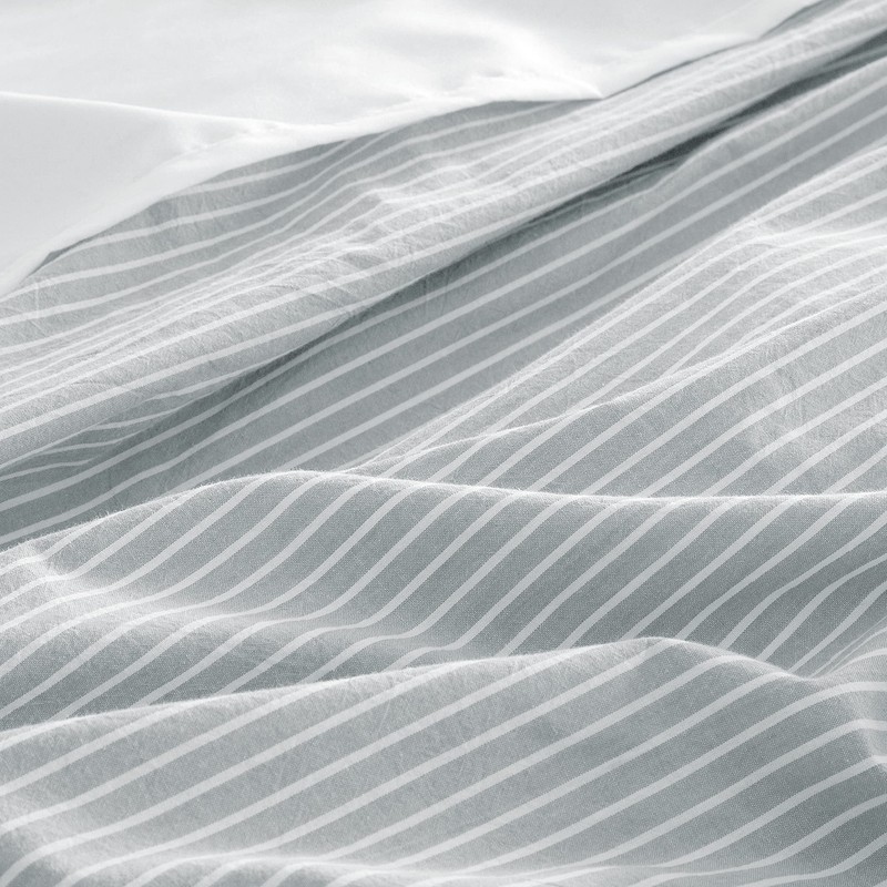 Get Bed Ready Stonewashed Cotton Pinstripe Chambray Duvet Cover Relaxed Minimal Scandinavian Style Bedding Set Yarn Dyed Natural Classic Striped Pattern Medium Stripe (King, Ice Grey)
