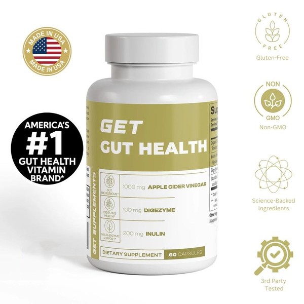 GET Gut Health – Digestive Support Supplement with 1000mg Apple Cider Vinegar & 200mg Inulin – 60 Capsules, Gluten-Free, Non-GMO, Made in USA