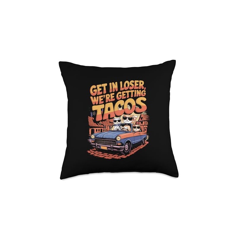 Get in Loser Taco Cats Meme Tee Throw Pillow