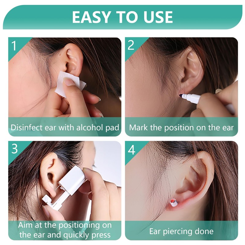 - Easy to Use: These self-ear piercing gun is as easy to use as a stapler! Simply align the tip of the stud with the mark on your ear, press quickly, and release your hand after hearing a "click" sound. Perfect! Everything is done.