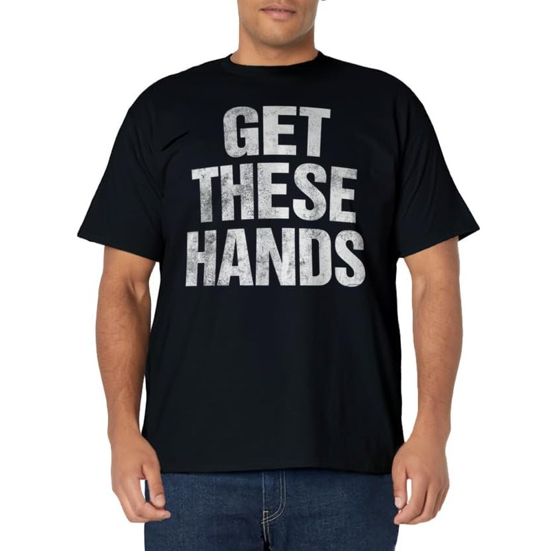 - Get These Hands TShirt. Funny gag humor joke fitness gym workout shirt