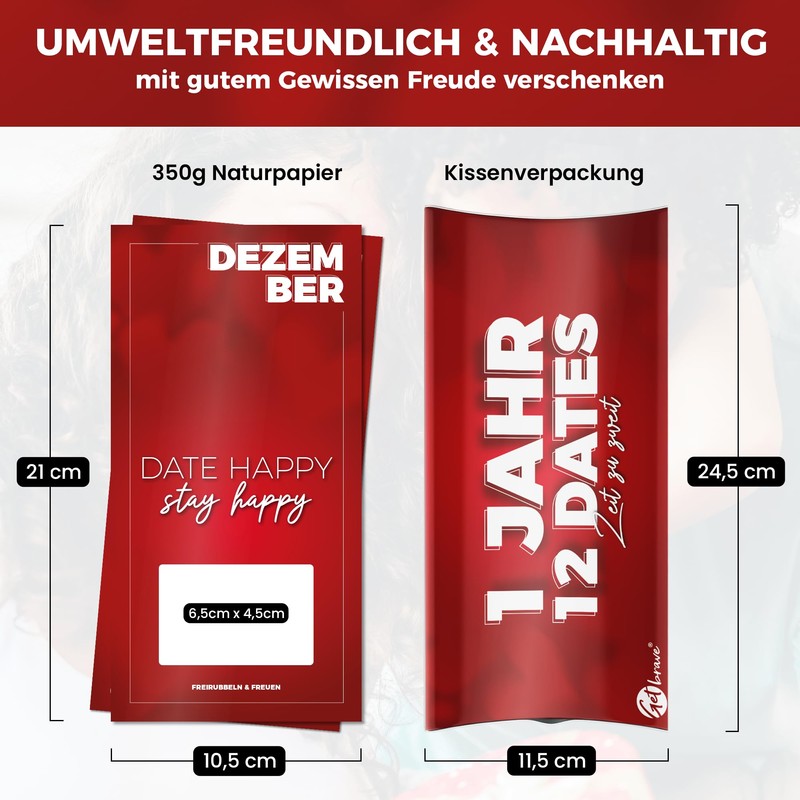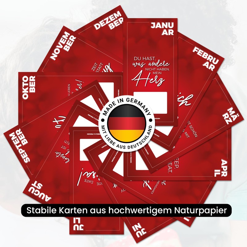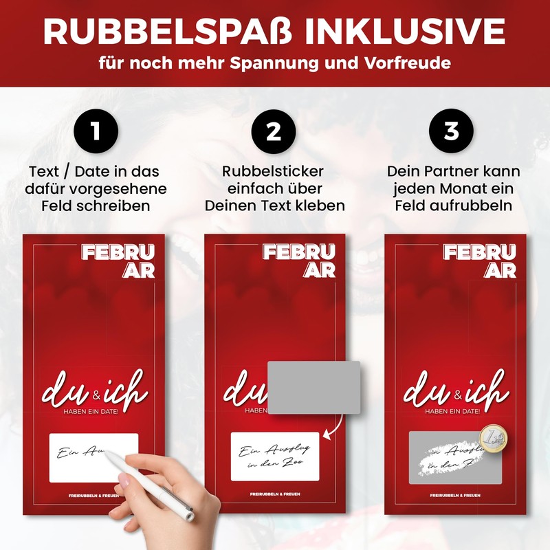 - ❤️ 12 Einzigartige Dates für 12 Monate: Erhalte 12 Monatskarten samt Rubbelsticker, die du individuell beschriften kannst – für jedes Monat ein aufregendes und kreatives Date! Das Ganze kommt in passender Geschenkbox zu Dir.