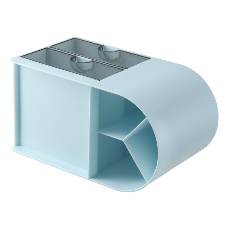 GetCoupon Pen Holder for Desk, 4 Slots Pencil Holder with 2 Transparent Drawer, Cute Desktop Stationery Organizer Box