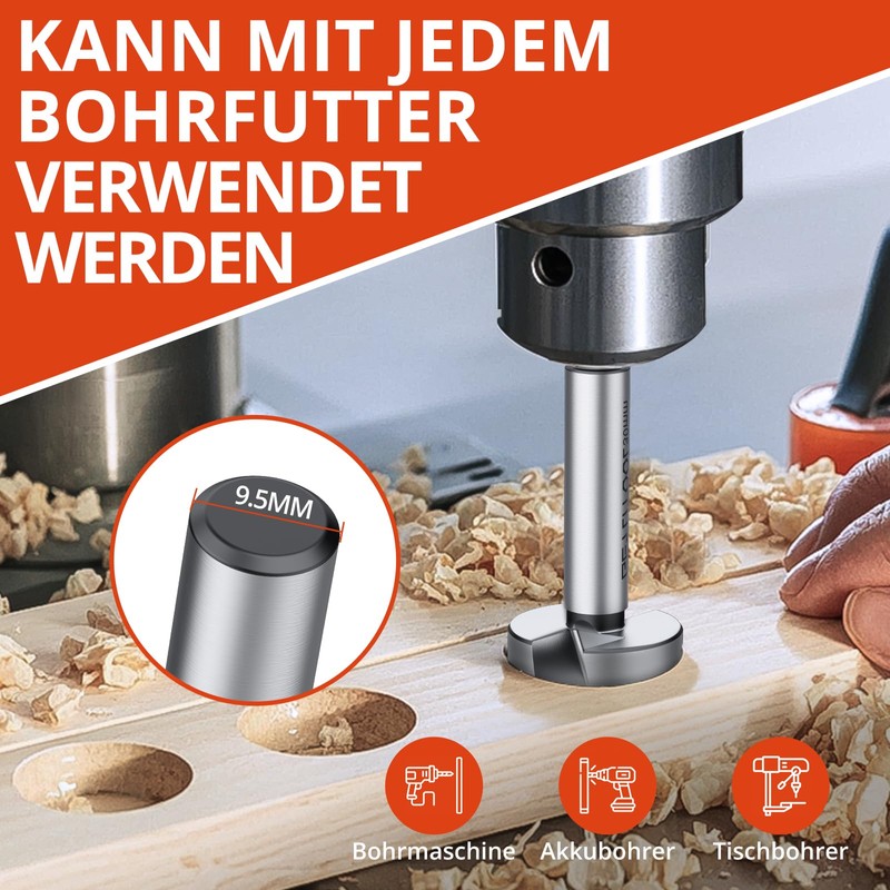 - COMPLETE SET OF 5 SIZES This set of 5 Forstner drill bits offers a variety of sizes (15mm, 20mm, 25mm, 30mm, 35mm) to meet all requirements. Simply choose the right size and make the work more efficient and convenient