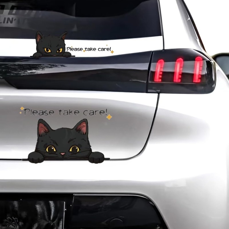 GETON Cute Black Cat Stickers, Set of 2, Stickers, Logo, Car, Motorcycle, Cut, Dress-up, Custom, Cat, Cat (Set of 2)