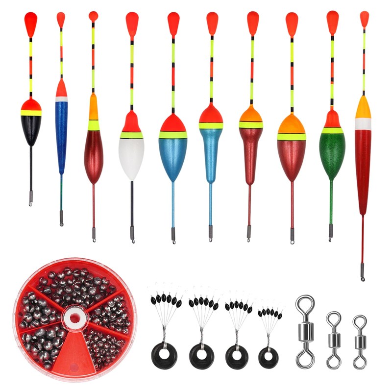 - 🐟Packliste: Sie erhalten 10 stück schwimmer angeln, und 205 stück angelblei set (0,2–0,8 g), 4 stück space beans, 3 stück achter spannringe. ausreichende menge und reichhaltige konfiguration, um ihren langfristigen angelbedarf und ersatz zu decken.