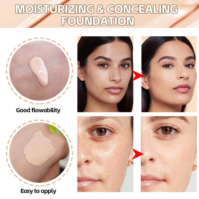 • SMOOTH TEXTURE: This moisturizing foundation, texture fluidity, good ductility, smooth application, on the face without flying powder, cracking, caking, heavy, refreshing non-sticky. Let your skin feel moisturized.