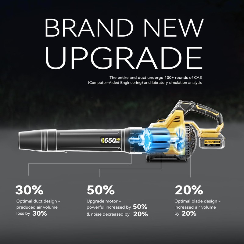 - Exceptional Blowing Performance: Our Leaf Blower adopts advanced turbo technology and axial fan design to maximize airflow output. It delivers an impressive air volume of up to 650CFM with the tapered nozzle, ensuring the Leaf Blower Cordless is highly effective for clearing large piles of leaves and debris.
