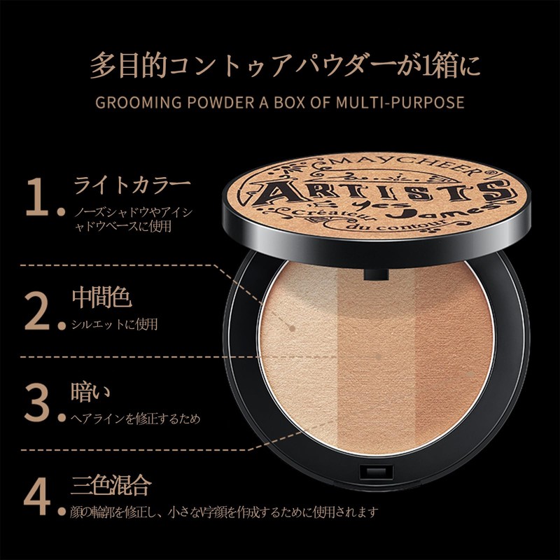 • 【Scientific Comparison of 3 Colors】Simple plates include shadow color, transition color, and highlight color. It meets your concise needs, brightens your entire needs, easily create 3-dimensional contours, change cheekbones, nose bridge and other parts, and change the facial contours