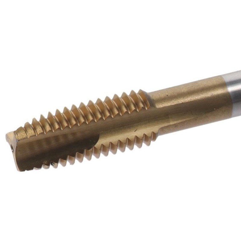 - Titanbeschichtung: Die Gewindebohrer sind titanbeschichtet, was ihre Verschleißfestigkeit, Härte, Hitzebeständigkeit und Schmierfähigkeit verbessert