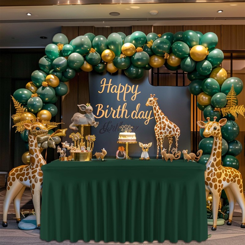 GEWONELIFE Dark Green Spandex Tablecloth with Skirt – Wrinkle-Free, Fitted El...