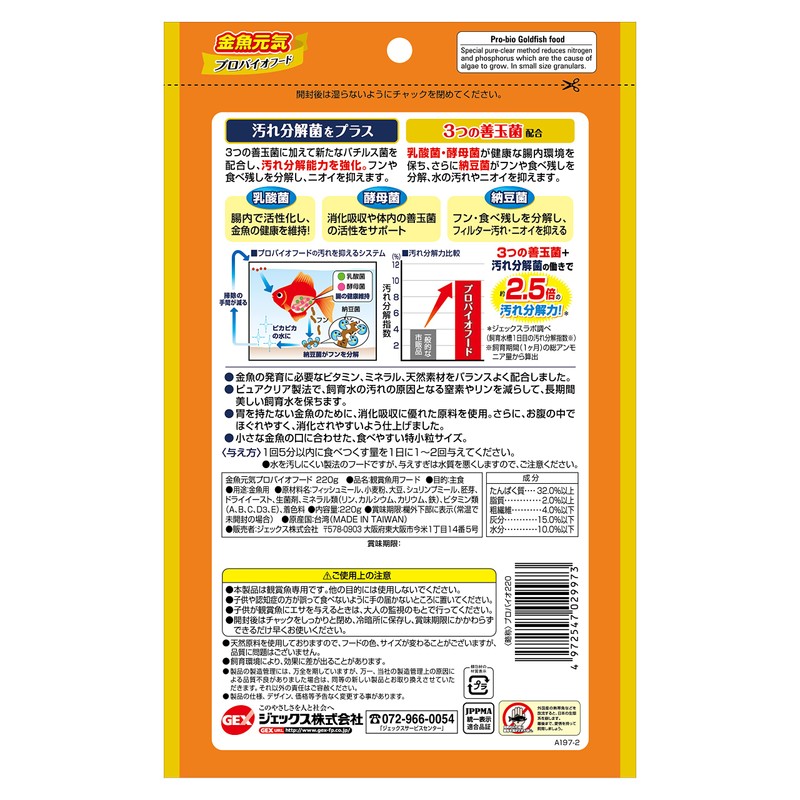 Gex GEX Goldfish Genki Probio Food, Contains 3 Good Bacteria, Levitating Granule Type Hood, 7.8 oz (220 g)
