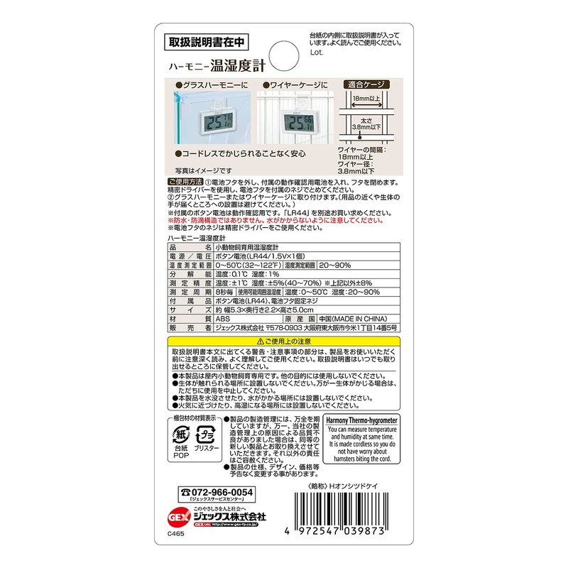 GEX Gex Harmony Thermo Hygrometer Cordless Digital Display for Hamsters and Small Animals