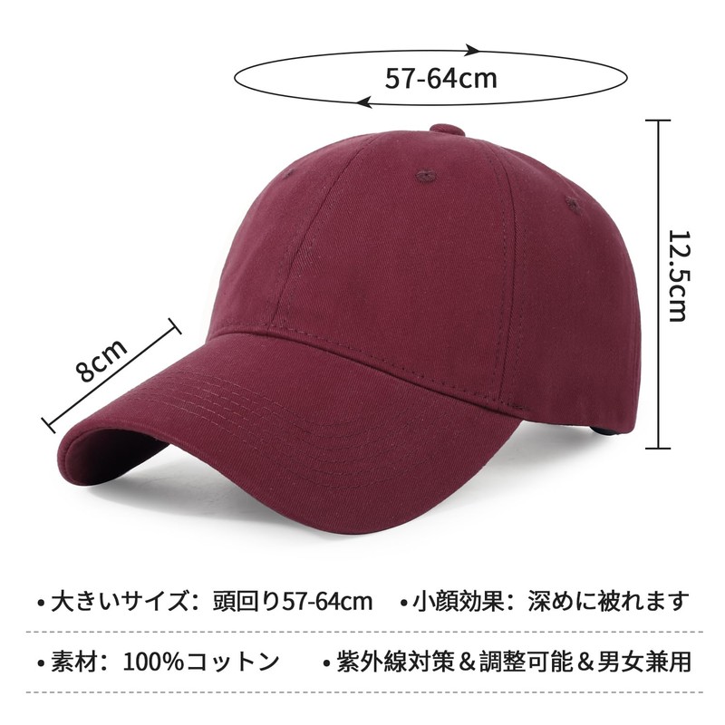 Geyanuo Cap, Men's, Large Size, Deep, Extra Large, 23.6 - 25.2 inches (60 - 64 cm), 100% Cotton, Plain, UV Protection, Adjustable Size, Outdoor, Simple, Casual, Unisex, red