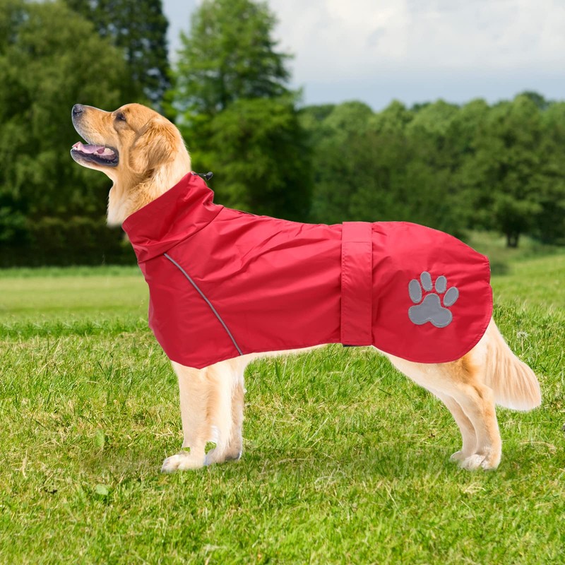Geyecete Dog Raincoat Jacket Adjustable Lightweight Raincoat cloth Best Gift for dogs with Safe Reflective-Red-S