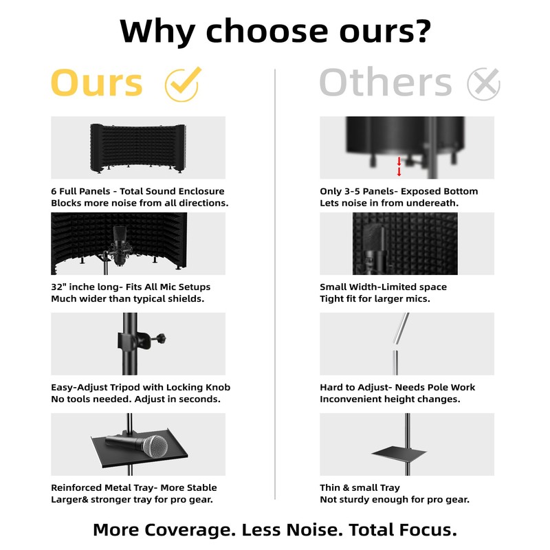 • Superior Noise Reduction – Designed with high-density acoustic foam, our microphone isolation shield effectively reduces background noise and echo, ensuring crisp, professional-quality recordings