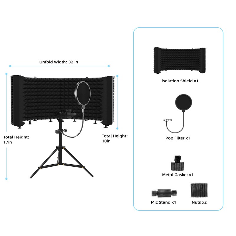 • Foldable & Adjustable Design – Features a multi-panel design with adjustable angles to customize your recording space. The foldable structure makes it compact and easy to store or transport