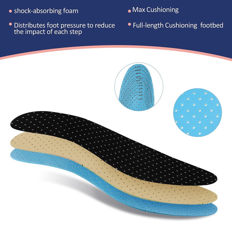 - Thoughtful Design: well fit inside your shoes, the size trim to fit virtually any shoe (starting at UK 2 Women's/ 35 EUR up to UK 11 Men's/ 45 EUR), soft insoles feature an great shoe fit; Bottom layer of grip Foam stays in place with less wrinkling and bunching