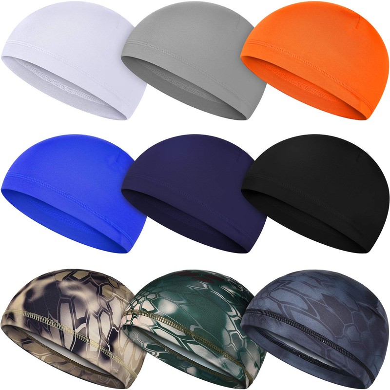 9 Pieces skull cap running hats helmet liner beanie cap sweat wicking cycling hat for men and women