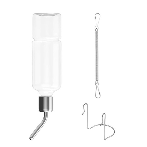 - Size:This Pet Water Bottle Total Length:150mm/5.9in; Diameter: 59mm/2.3in; Capacity: 350ml/11.8oz; Nozzle Diameter: 9 mm/0.36in.can be used inside or outside for cage, simple and easy installation.