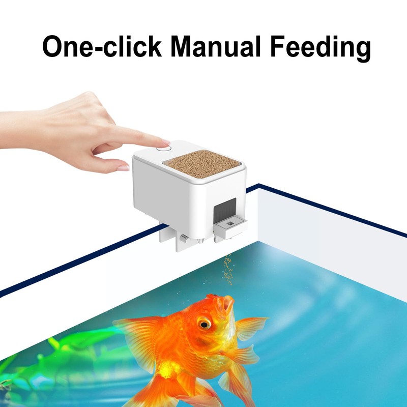 • 【Innovative Design】 The push-pull feeding design, solving the problem of damp fish food. Precise feeding, The smart fish feeder has four feeding bins of different sizes, which can be replaced according to the size of the fish food. The fish feeder can add a detachable fish food storage box on the top of the machine, and the total capacity can reach 450ML after installation (It is not included in the package and needs to be purchased separately, available in our store)