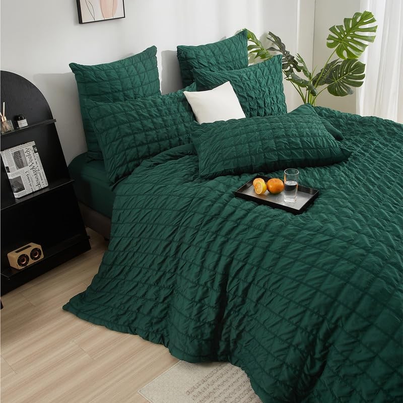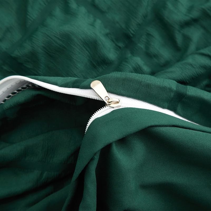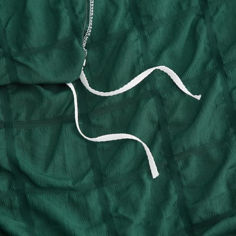 Gezu Seersucker Bed Linen Green Dark Green 135 x 200 cm Checked Embossed Brushed Bed Linen Set Summer Microfibre Bed Linen Romantic Duvet Cover 135 x 200 cm and 1 Pillowcase 80 x 80 cm with Zip