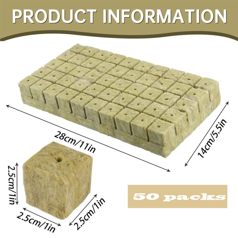 Gfamous Rockwool Cube, Rockwool Leaf Cultivation, Rockwool Cube, for Hydroponic Growing, Cuttings, Cloning, Propagation, Strong Growth, Pack of 50