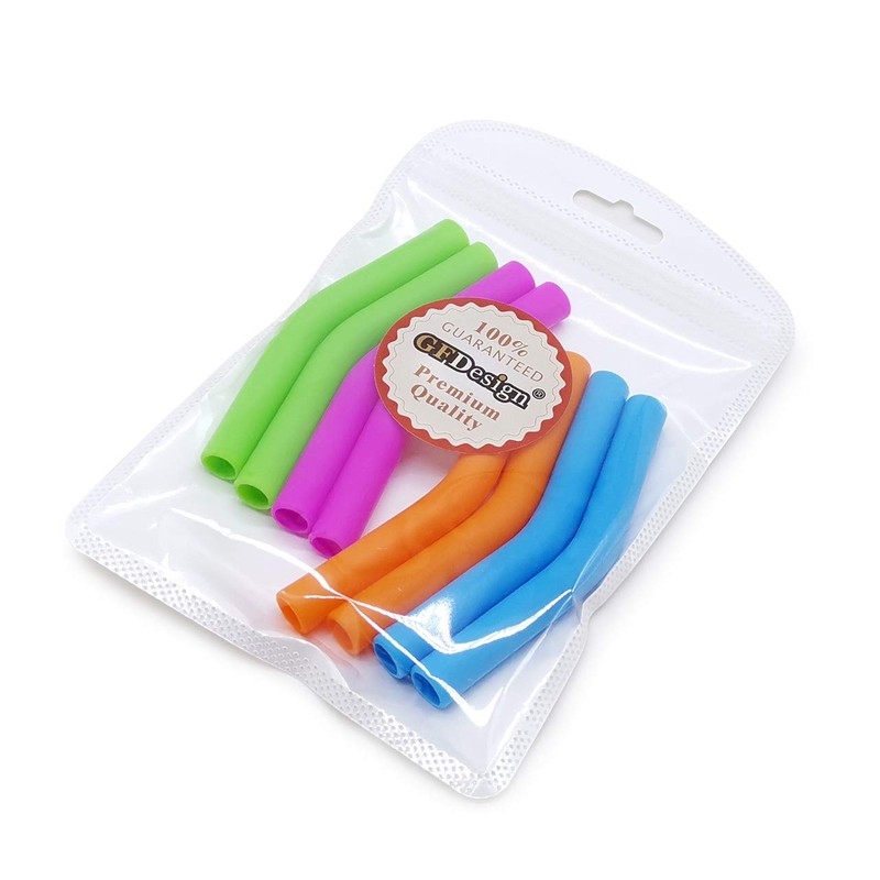GFDesign Food Grade Silicone Straw Elbows Tips Soft Reusable Metal Stainless Steel Straw Nozzles Only Fit for 5/16" Wide (8mm Outer Diameter) Multicolor - Set of 8