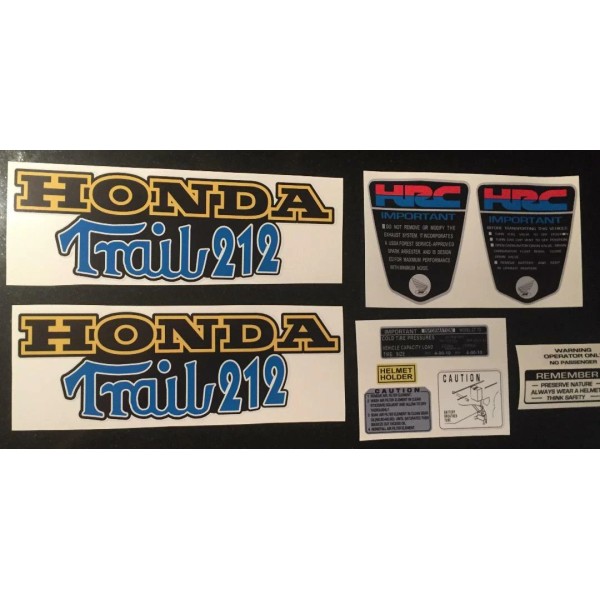 Honda CT70 K4 Style Frame Decals  "Trail 212"  Full set w/ HRC Side Decals  (left and right) and Warning Decals. For 212cc Upgrade.