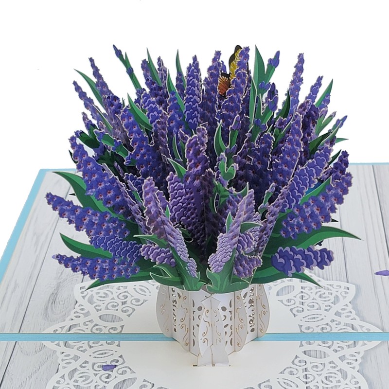 GFM® 3D Pop Up Greeting Card A Bouquet of Flowers - Perfect For Birthday, Valentine's, Mother's day, Anniversary, Wedding (CARD-A1) (Lavender)(CARD-3D-G13-LVN)