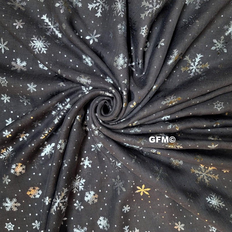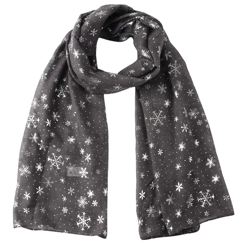 GFM Christmas Snowflakes Foil Print Scarf (88) (SNFLK-03-GHBH-Grey)