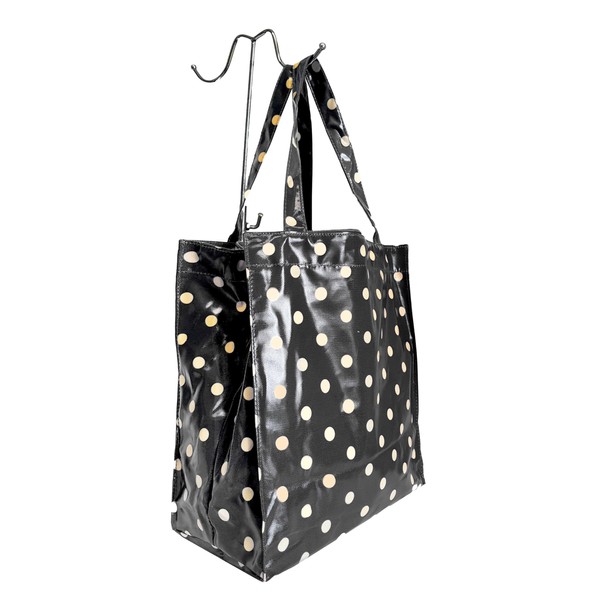 GFM® Polka Dot PVC Re-usable Shopper Lunch or Picnic Bag - Black - (OC-MG-Polka-KL)