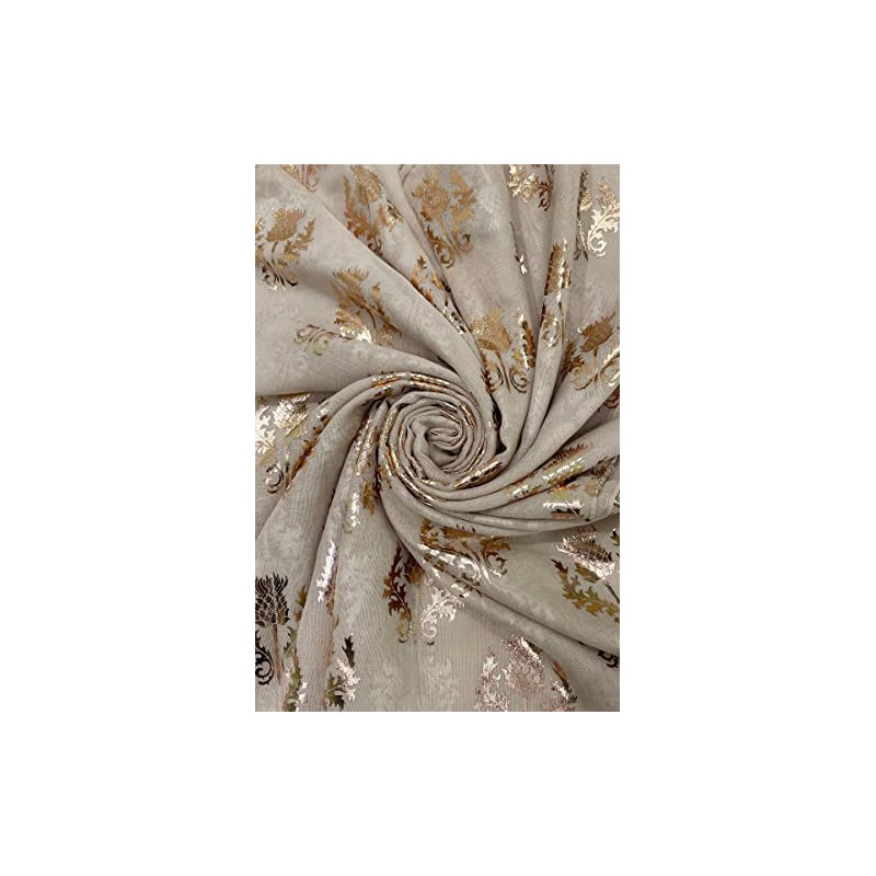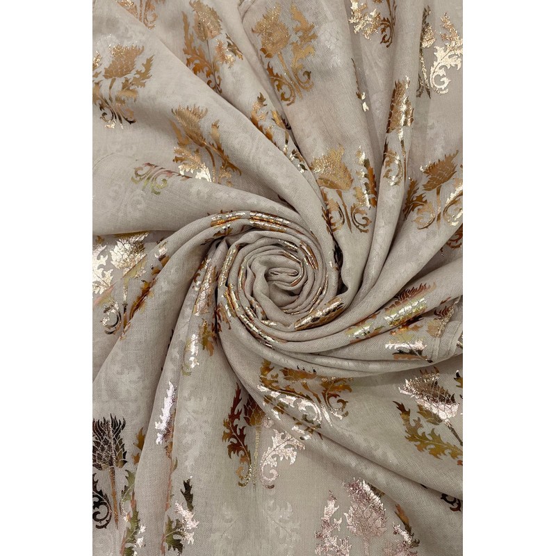 GFM® Scottish Thistle Flower Metallic Foil Print Scarf - Spring Summer - Beige - (FS-18B-F-ST-TR)